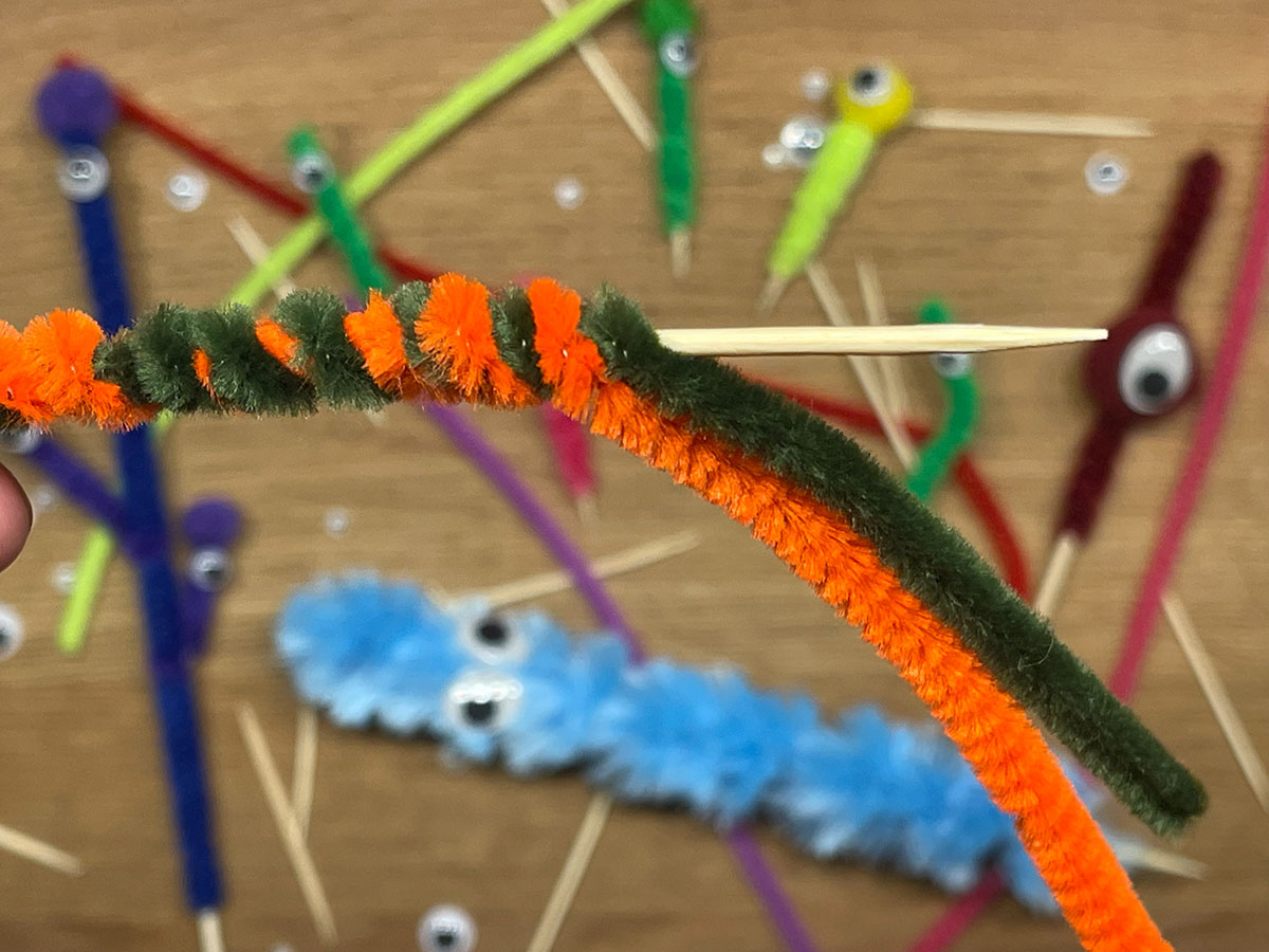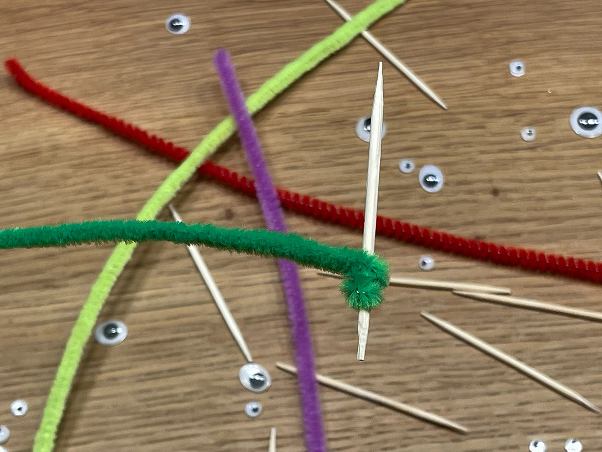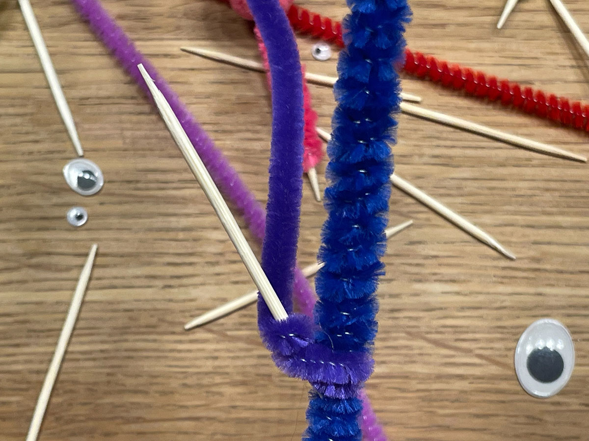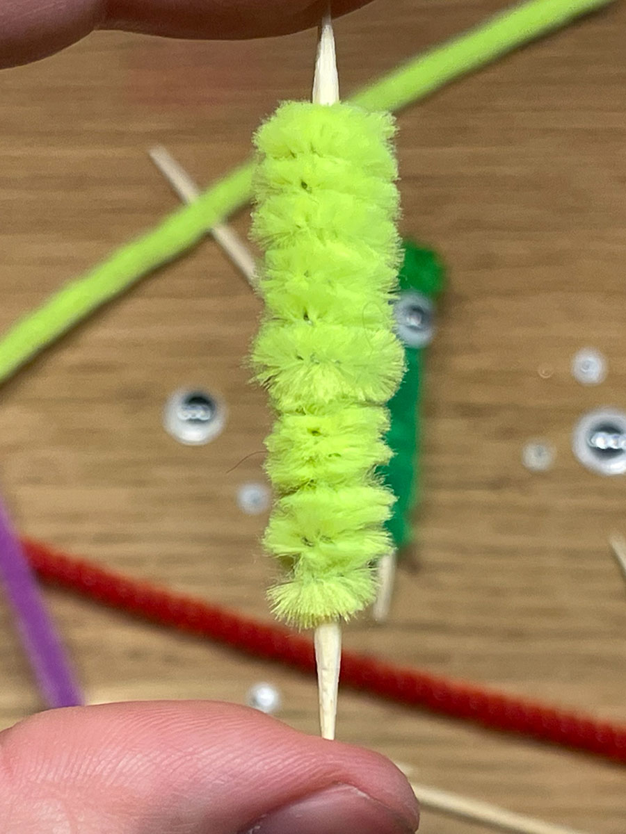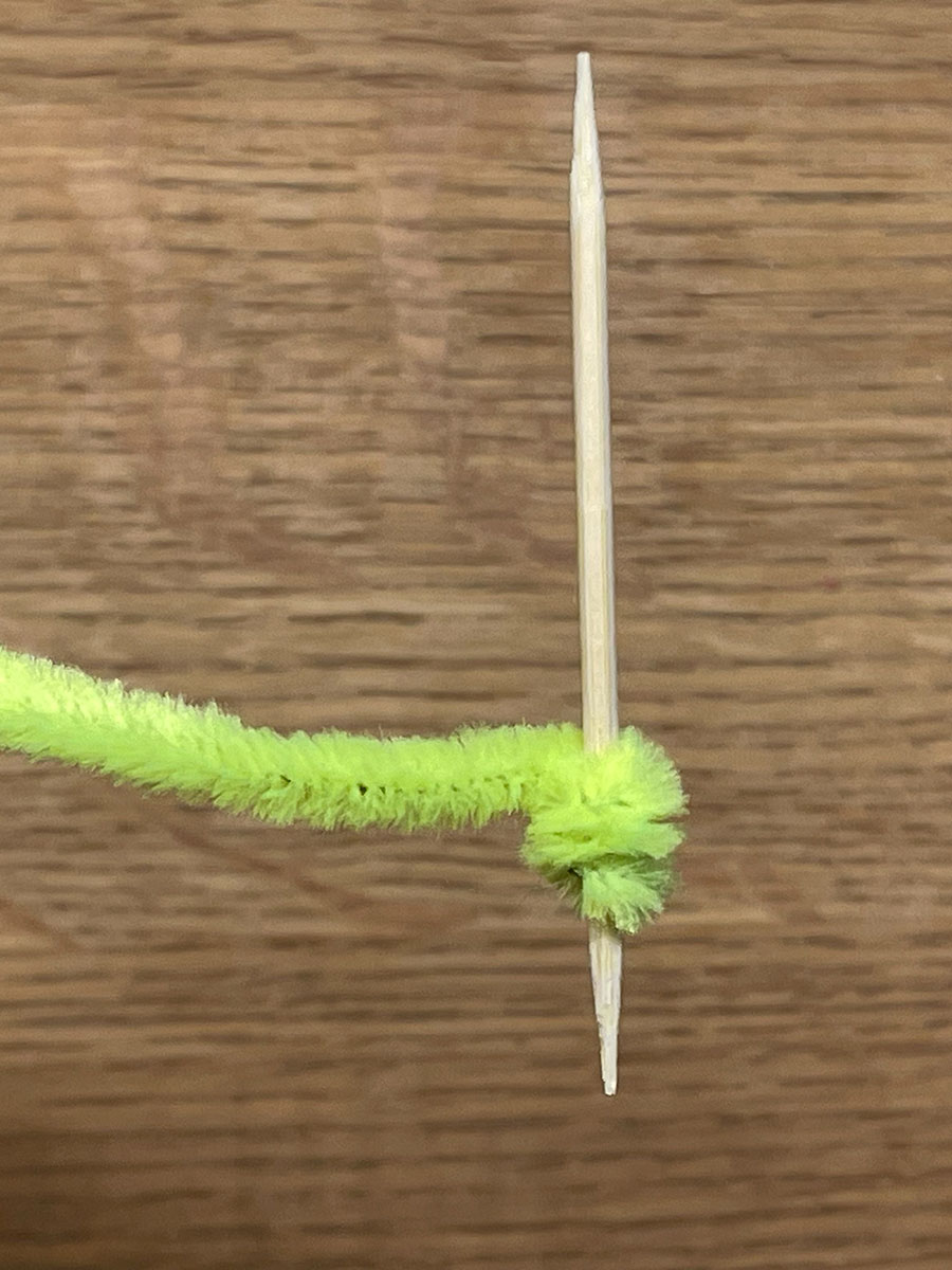 - Wickle den Pfeifenputzer um den Zahnstocher.