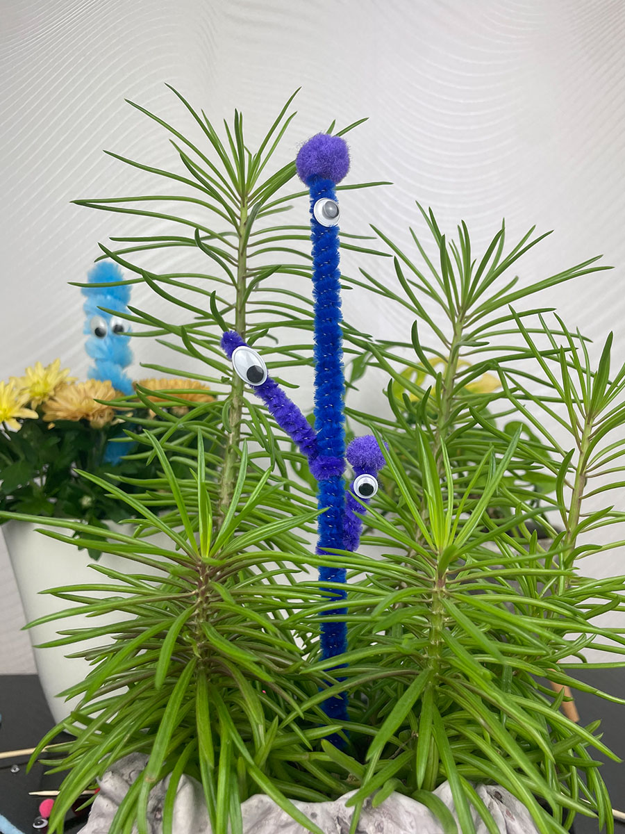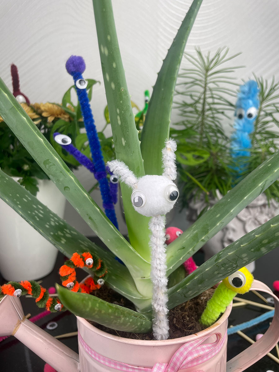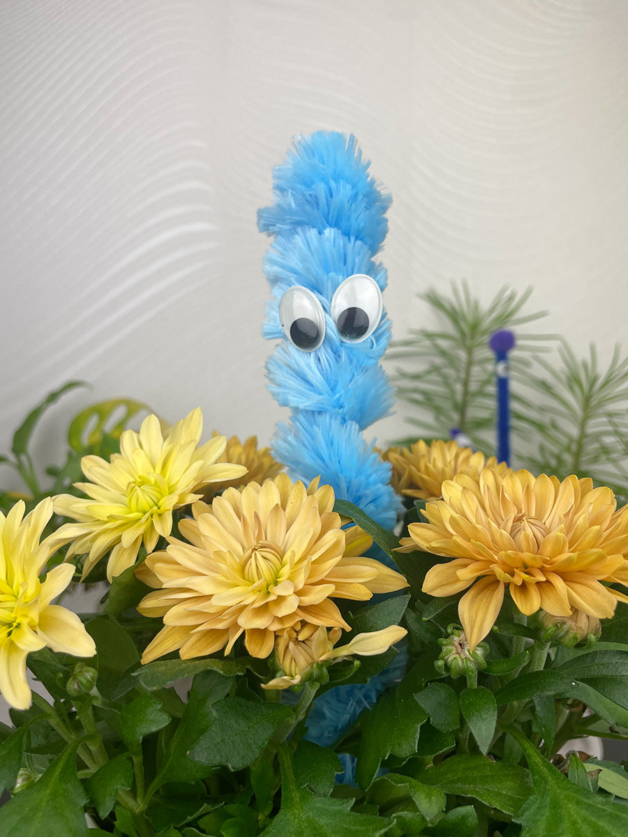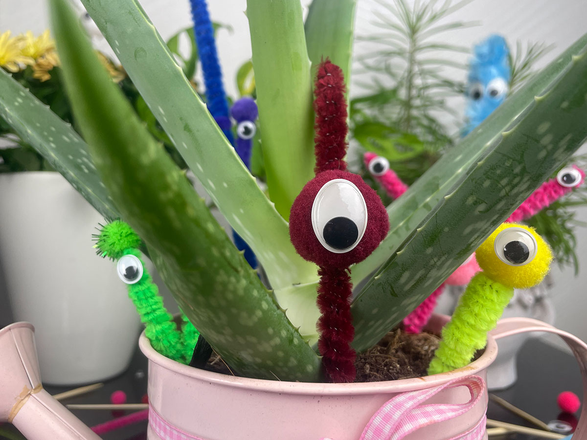 Das war es im Grunde auch schon. Alle weiteren Schritte liegen bei dir. Erstelle weitere Monsteraugen und verziere deine Blumen. Steckt sie heimlich bei Oma und Opa oder Freunden in die Blumen. Im Ideenpool gibt es noch ein paar kreative Anregungen für weitere Details.