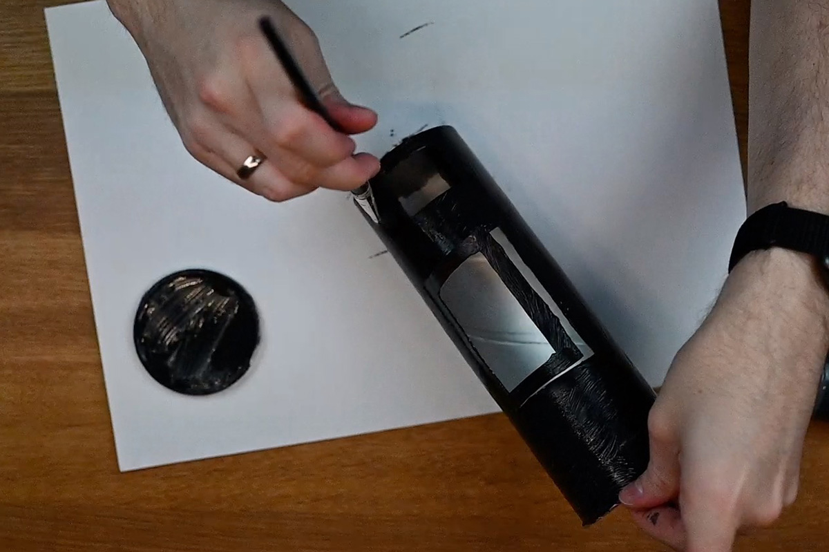 Jetzt wird die gesamte Außenhülle der Dose schwarz angemalt.