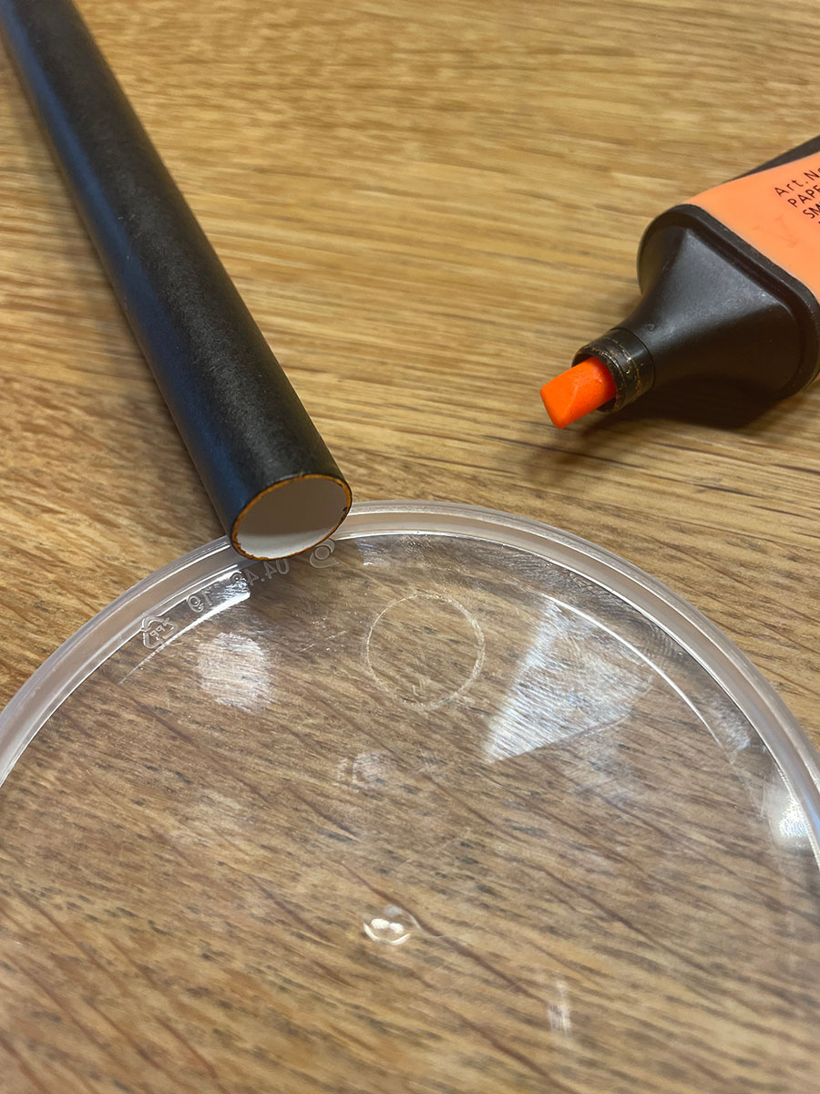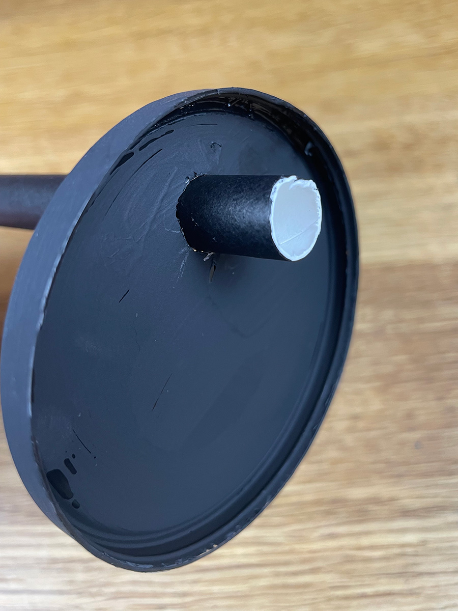 Tipp: Male die Öffnung des Strohhalms mit einem Permanentmarker an und drücke ihn auf den Deckel. So erhältst du eine leichte Markierung für den auszuschneidenden Kreis.