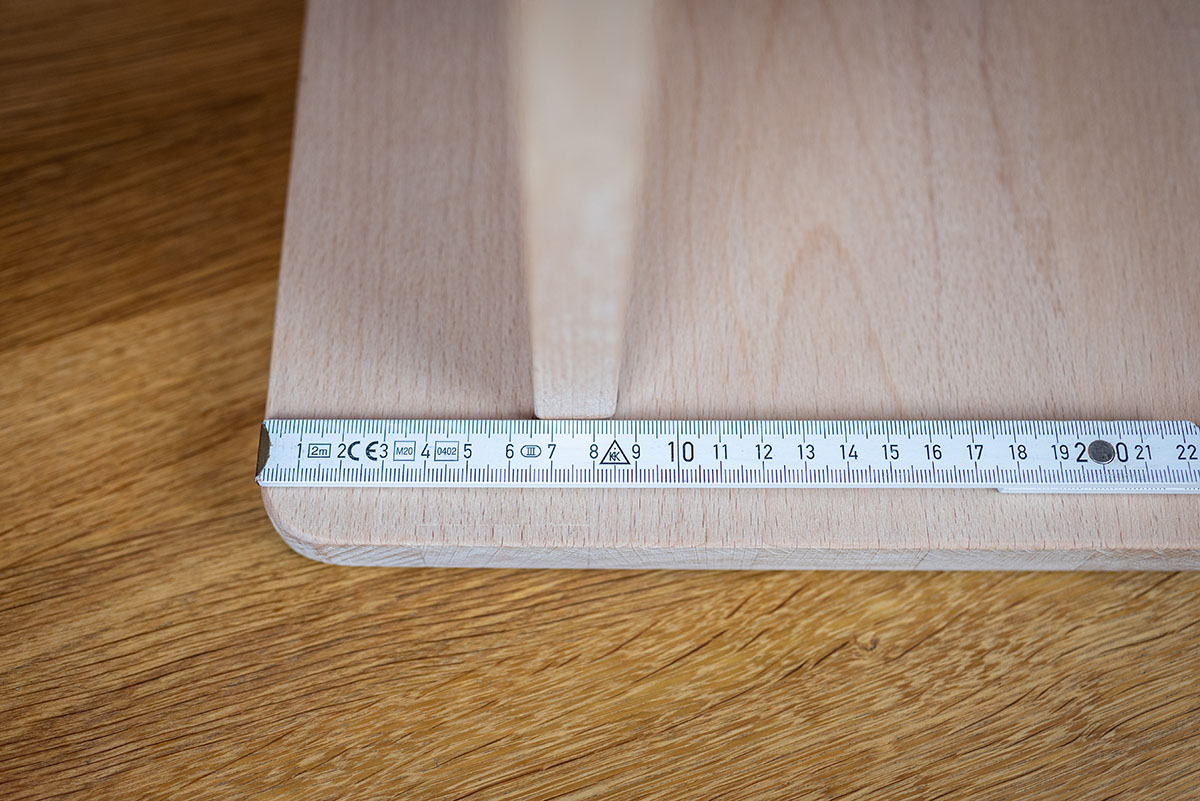 Die Abrundungen können mit einer Stichsäge vorgenommen und anschließend mit einer Schleifmaschine verfeinert werden. Auch die Flächen sollten glatt geschliffen werden, um eine angenehme Haptik zu erzielen.